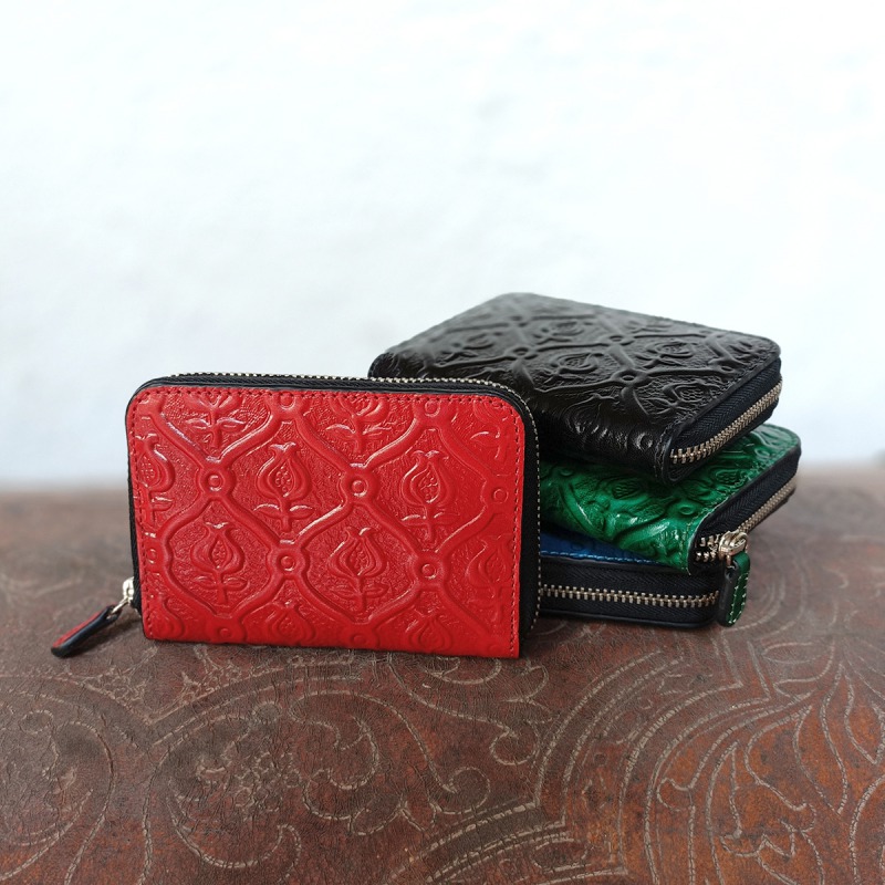 Purse version of Isabelino wallet. It has three compartments for coins and two for cards. Dimensions: 11.5 x 8